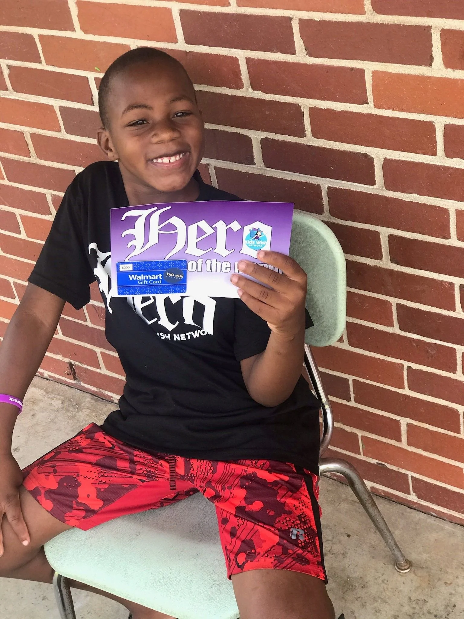 Marquette struggles with very challenging medical conditions, yet he loves to make new friends and is always incredibly happy and smiling. He never lets his physical health hold him back. Marquette adores playing basketball, and always gives it his all. “He is a true Hero because he perseveres and never gives up no matter how difficult anything is for him to do,” said his Parent Consultant Stacy Mitchell at Children’s Rehabilitation Services in Anniston, Alabama. “If you’re down, he is so loving and caring. With all that he’s been through, he still likes to do things that other children do. He’s so happy and has a lot of love to share.” Mitchell nominated this inspiring 9-year-old who leads by example with his positivity and determination. Kids Wish Network is honored to award Marquette as a Hero.