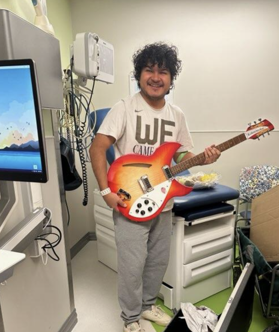 AURORA, Colorado – Saul’s doctor appointment was not at all what he expected, he had some very unexpected news. His doctor announced that Kids Wish Network was making his dream come true, getting him the one thing that he wanted more than anything else… a Rickenbacker 330 FireGlo electric guitar! It felt so surreal finally holding the iconic instrument in his hands, and he had the biggest smile fully taking in the awe of his extraordinary gift. Dave’s Guitar Shop and Kids Wish Network teamed up to make Saul’s dream his reality. It was also special for his doctor and medical team to see it all happen, knowing everything that he went through on his healing journey.